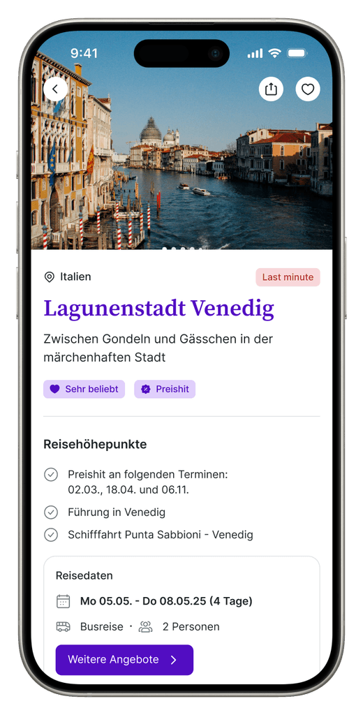 Bedürfnisorientierte Vorschläge für weitere Reisen und Einsicht in wichtige Dokumente.