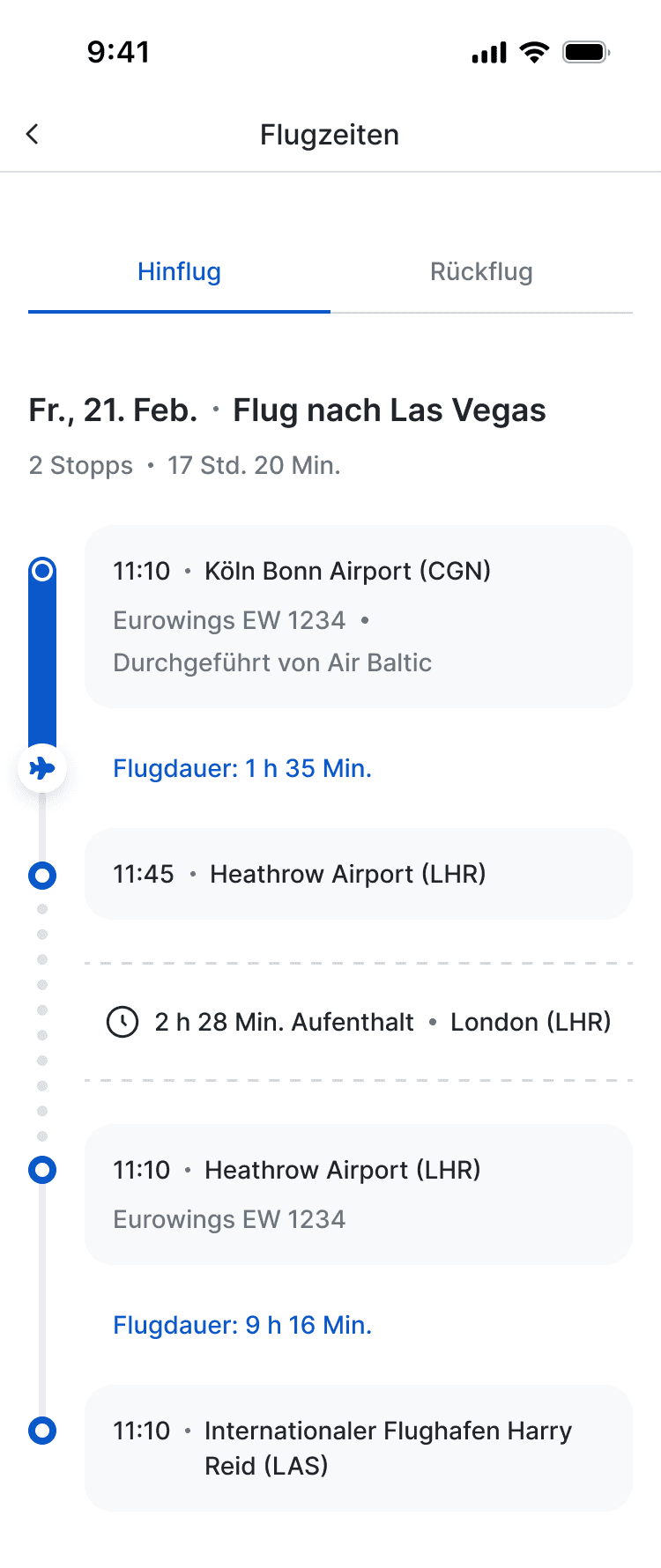 Flugzeiten und Verbindungen
